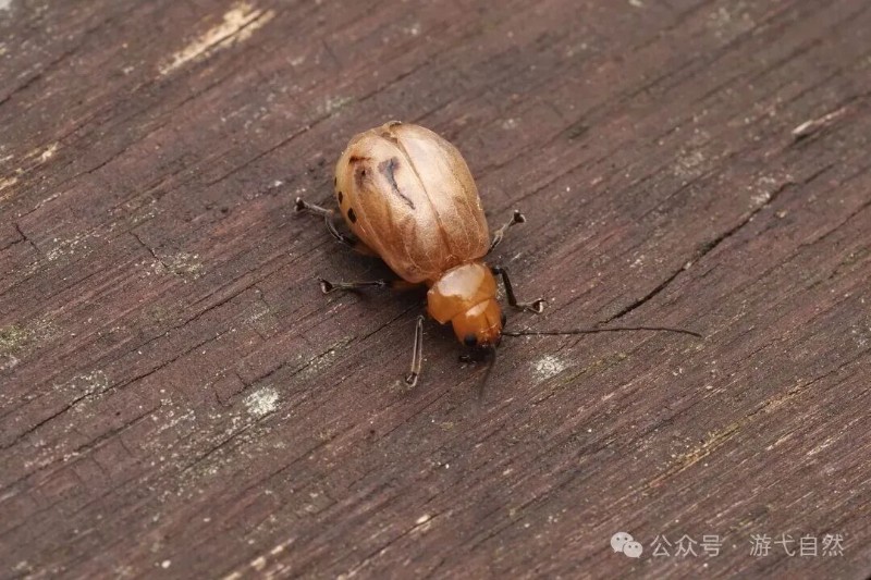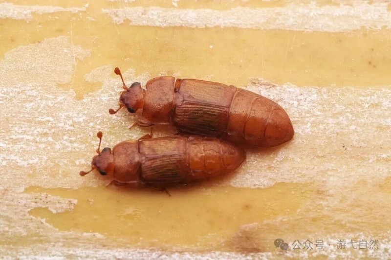 盾赤露尾甲也是以竹笋为食,体卵圆形,前胸背板的后角尖锐。