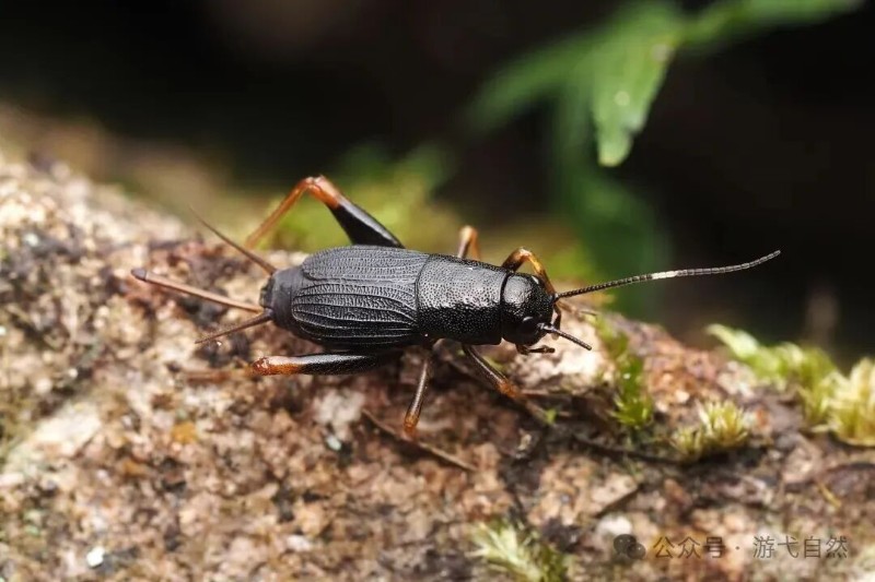 石头上爬过一只蟋蟀,翅革质而胸背满是刻点,触角有白色环。这附近之前还发现过黄角灰针蟋,算是个蟋蟀辈出的宝地。