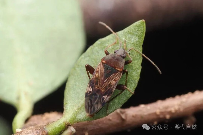 树叶背面有不少同蝽,有些长蝽也会在树上取食果实。这是我记录的毛肩长蝽属的第二种,也是地长蝽较为常见的模样,所以看到时心里想的是:这个我见过。